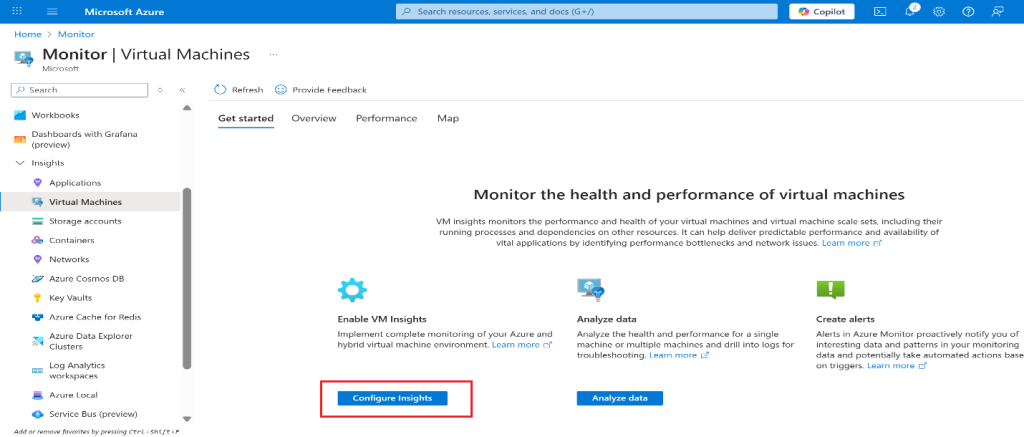 Once the VM is deployed, Azure Monitor must be enabled to collect telemetry.