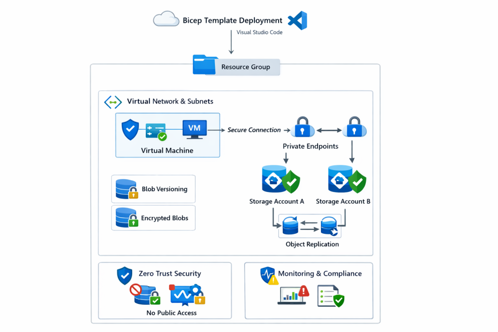 By combining Bicep, Private Endpoints, and secure storage configurations, this lab demonstrates how production-ready Azure environments can be deployed in minutes, with consistency, predictability, and security built in from the start.