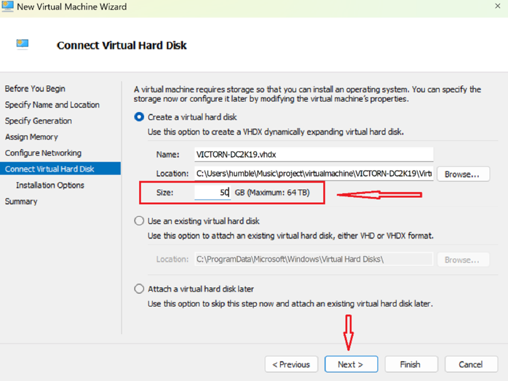 Name your VM (e.g., VICTORN‑DC2K19)