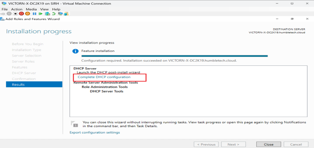 ✅ Result: DHCP Server role installed and authorized in Active Directory.