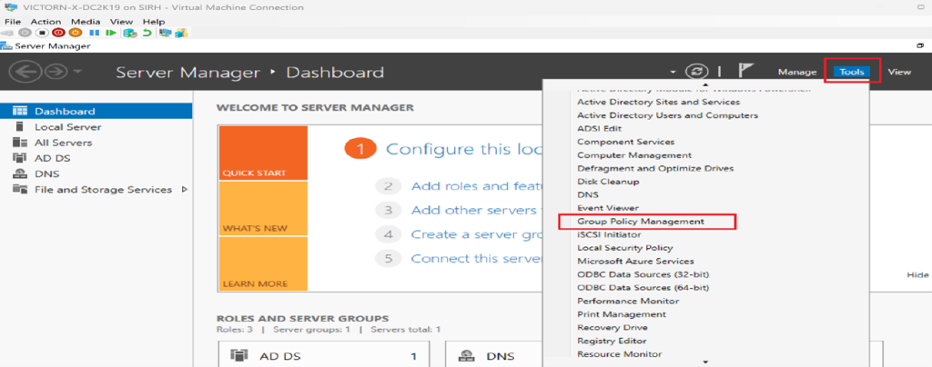 Navigate to Tools → Group Policy Management