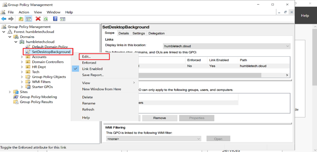 Create or edit a GPO (example: CompanyDesktopBackground)