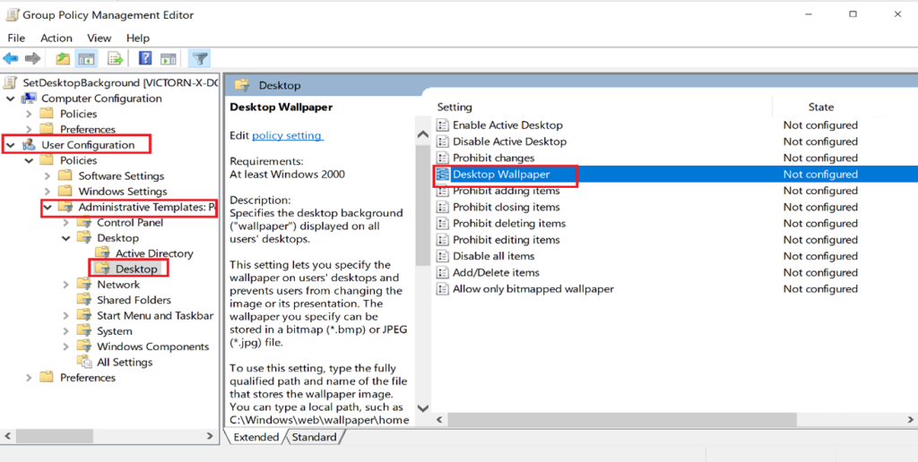 User Configuration → Administrative Templates → Desktop → Desktop Wallpaper