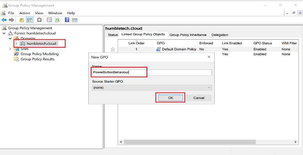 Create a new GPO (example: PowerButtonControl)