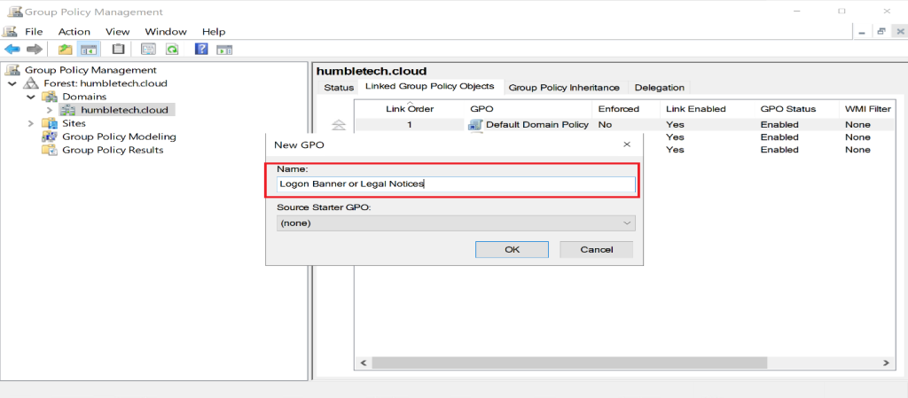 Create a GPO (example: LegalNotice)