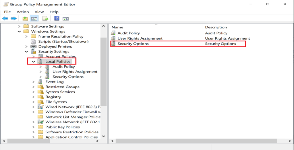 Computer Configuration → Windows Settings → Security Settings → Local Policies → Security Options