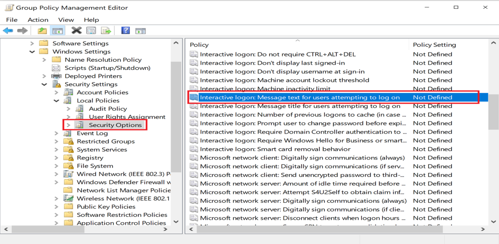 Interactive logon: Message text