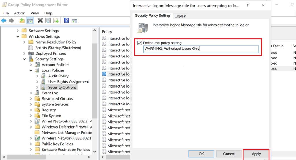 Interactive logon: Message title
