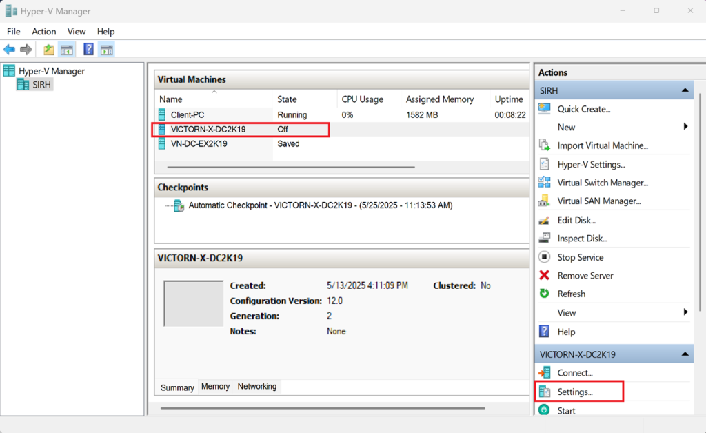 Select the VM → Settings