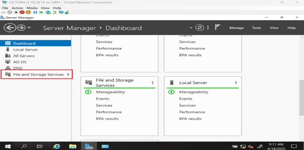 - Under File and Storage Services → Expand File and iSCSI Services