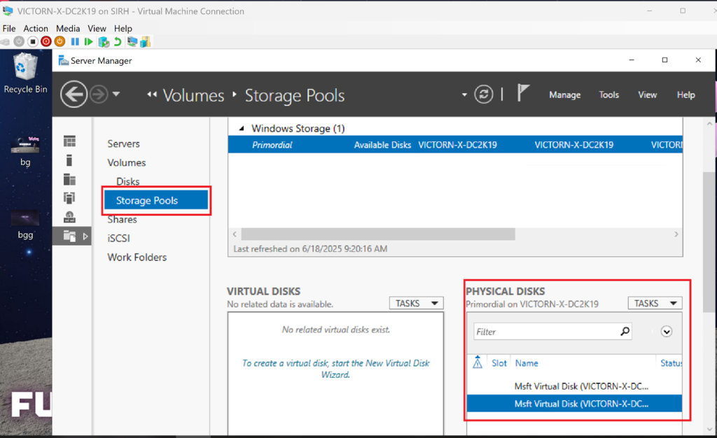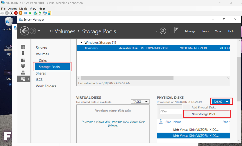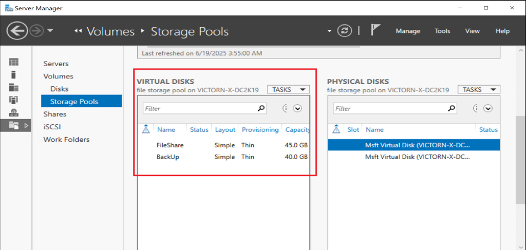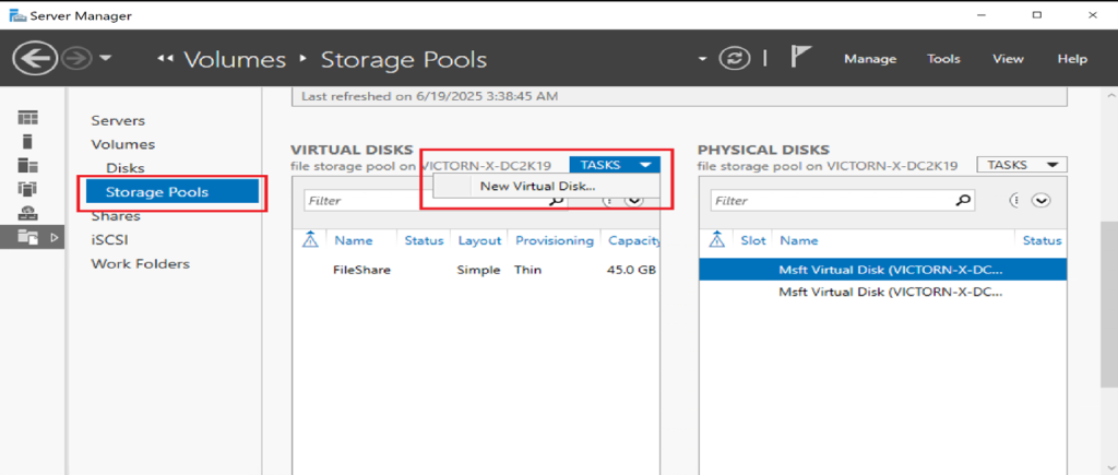 Navigate to File and Storage Services → Storage Pools