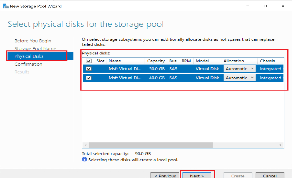 Select available physical disks