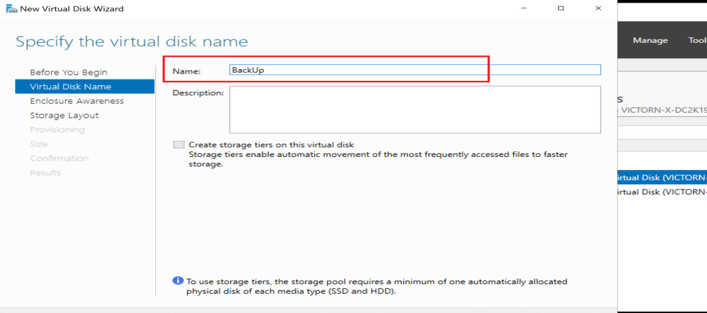 - Name the virtual disk