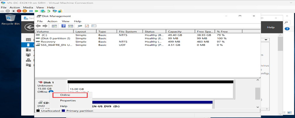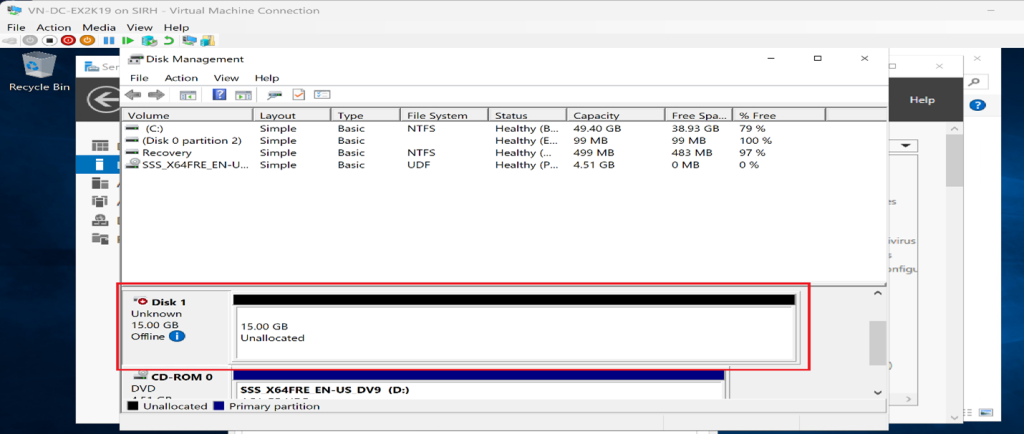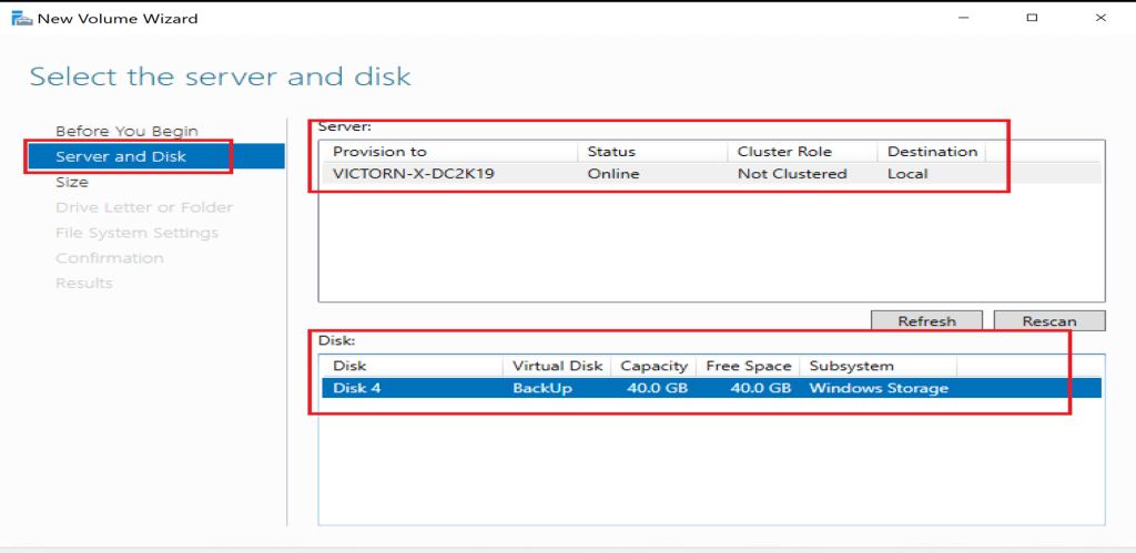 Select the server and virtual disk