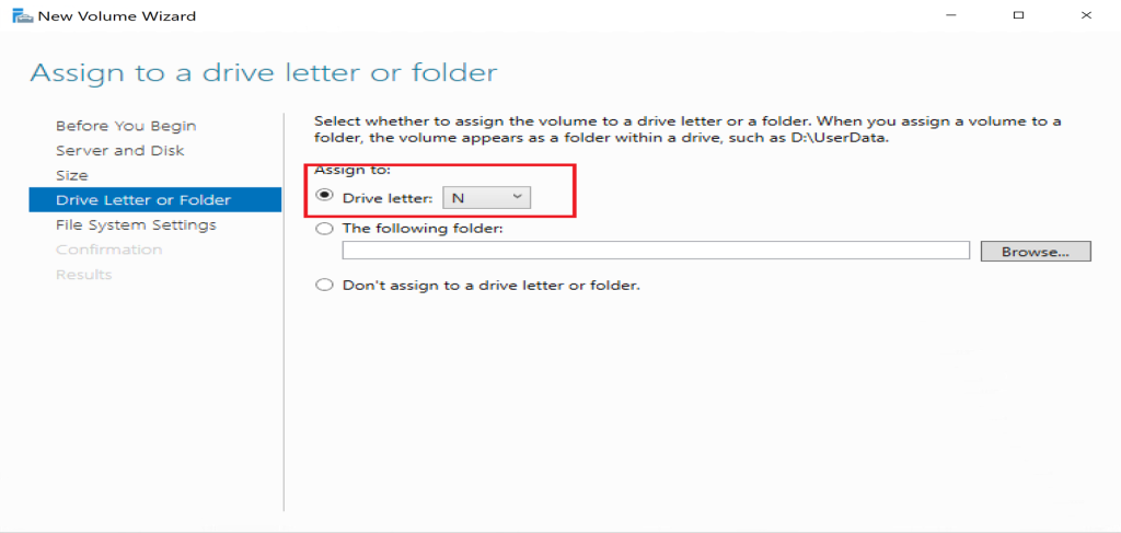 - Assign a drive letter to the disk.