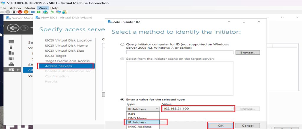 - Choose IP Address and enter the initiator server’s IP.