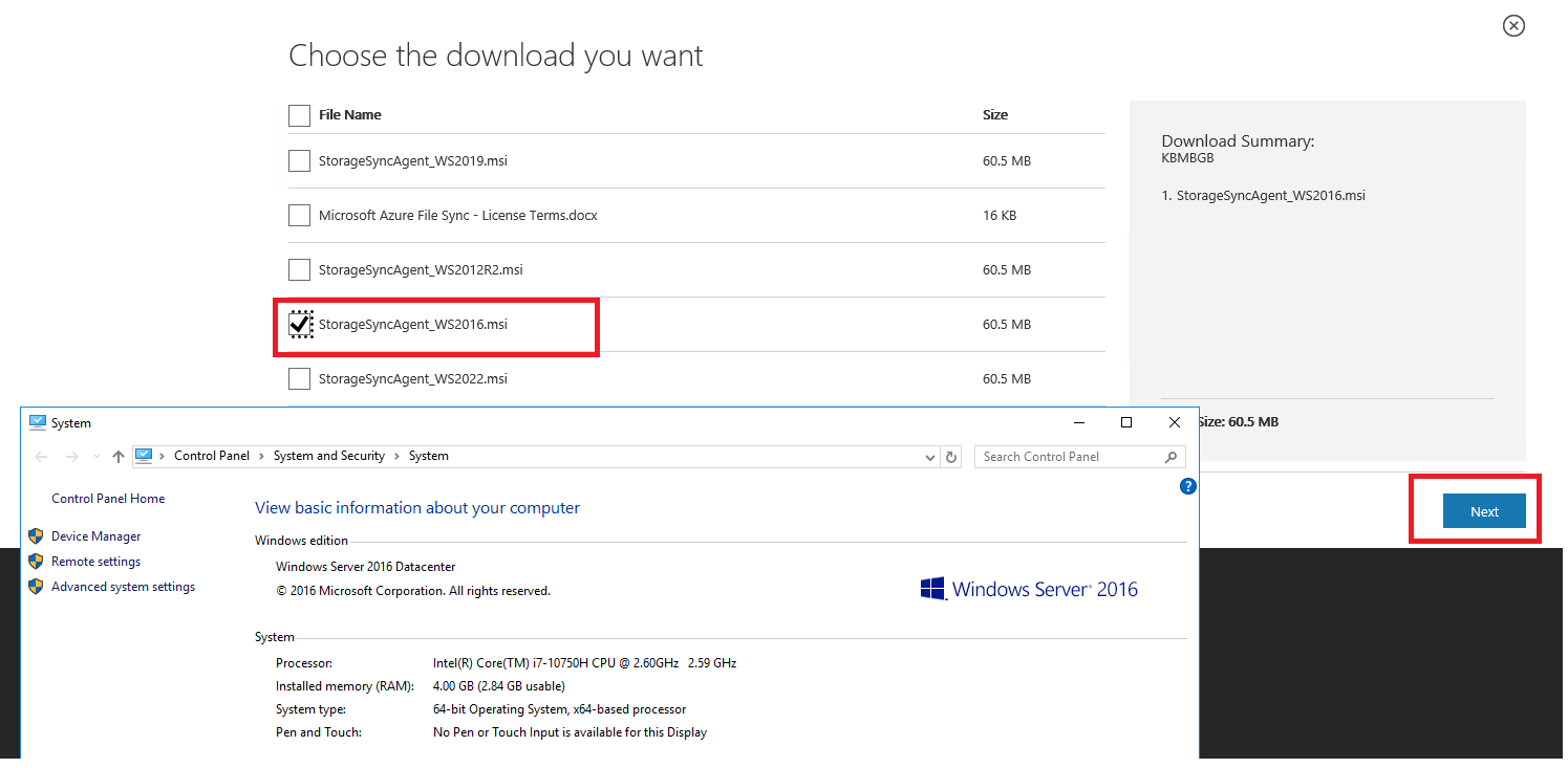 Step 2: Click on the Azure File Sync agent to download it and install it on all the servers you want to sync.