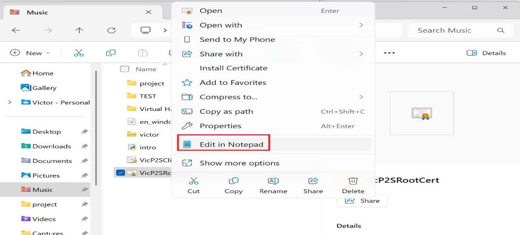 - Subject โCN=VicP2SClientCertโ -KeyExportPolicy Exportable `