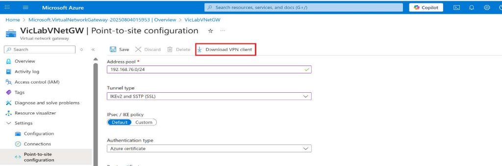 Lab Walkthrough: Configure Azure Point-to-Site VPN (Certificates)