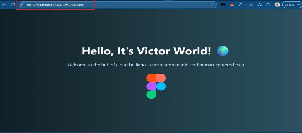 - Verify the production web page now displays “Hello, It’s Victor World!” which is my customized page.