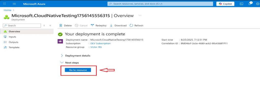 - Wait for the load test to create, and then select Go to resource.