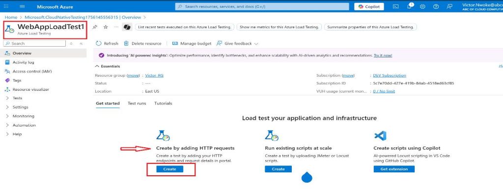 - In the Load Test Your App box, select Create Load Test.