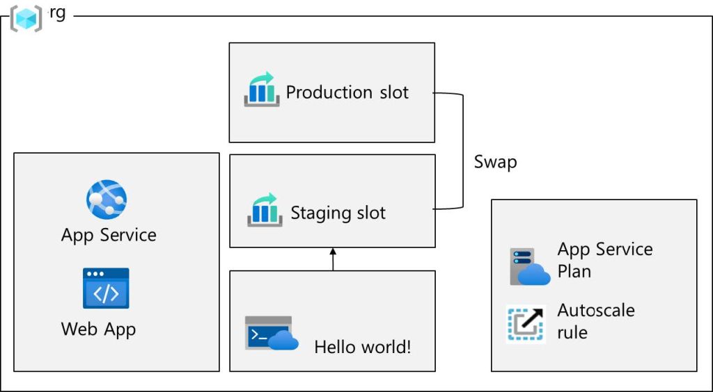 A practical Azure App Service lab covering staging slots, slot swaps, autoscaling, and traffic testing.