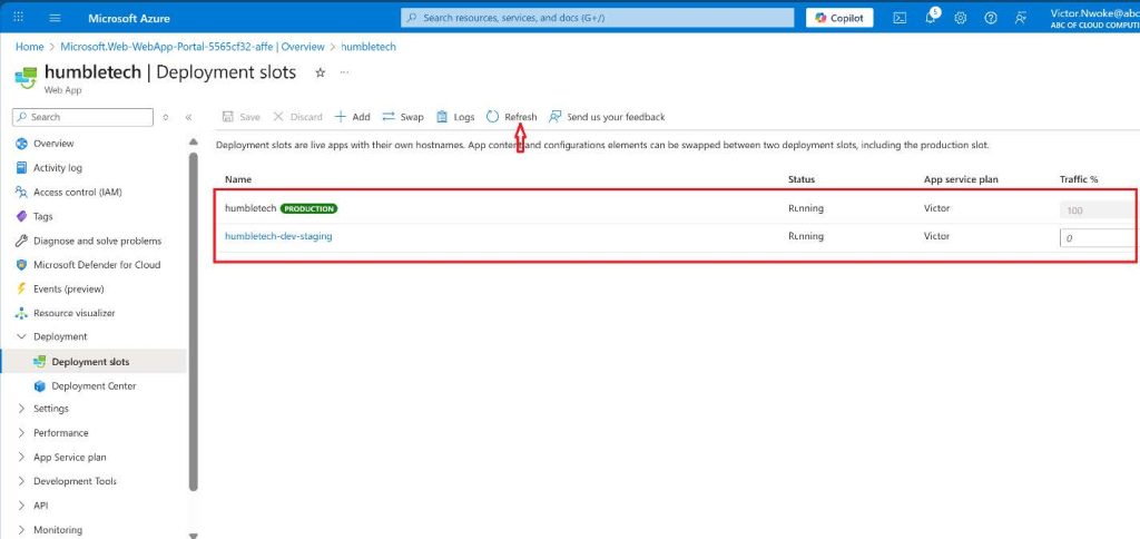 - Refresh the page to view the Production and Staging slot.