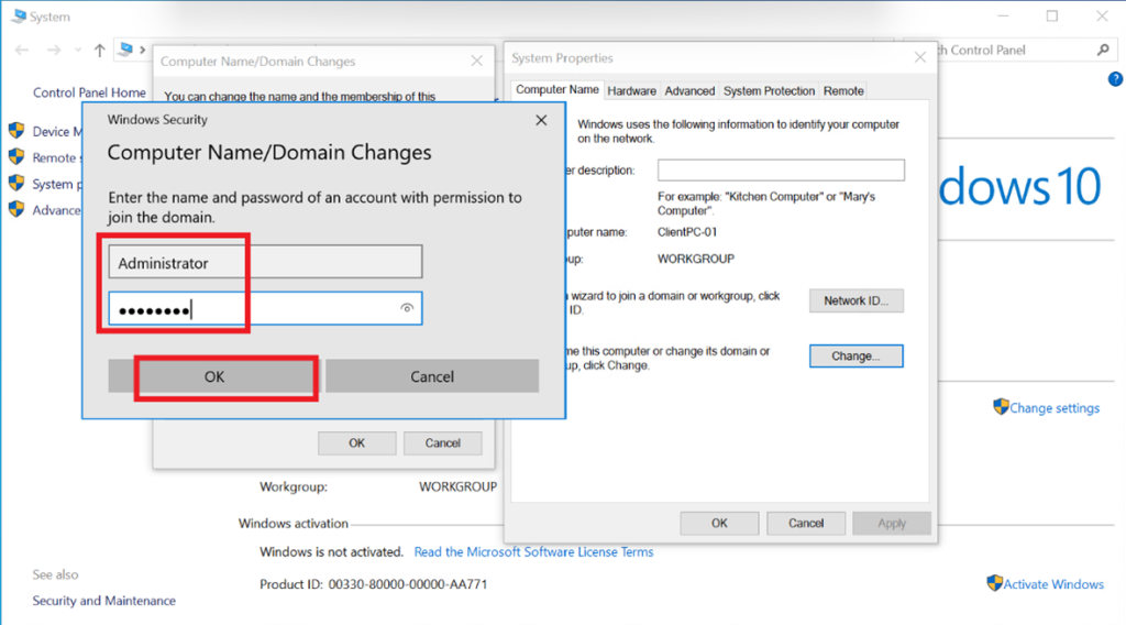 Authenticate using domain administrator credentials