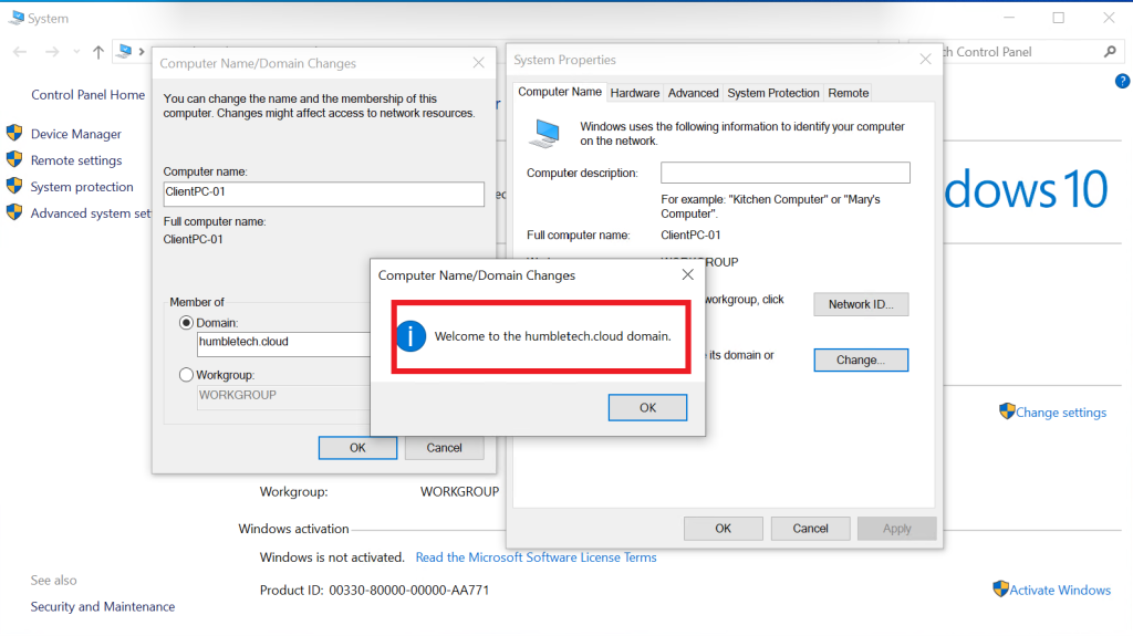 Congratulations! You Have Successfully Join a Windows Client to Active Directory on Windows Server 2019