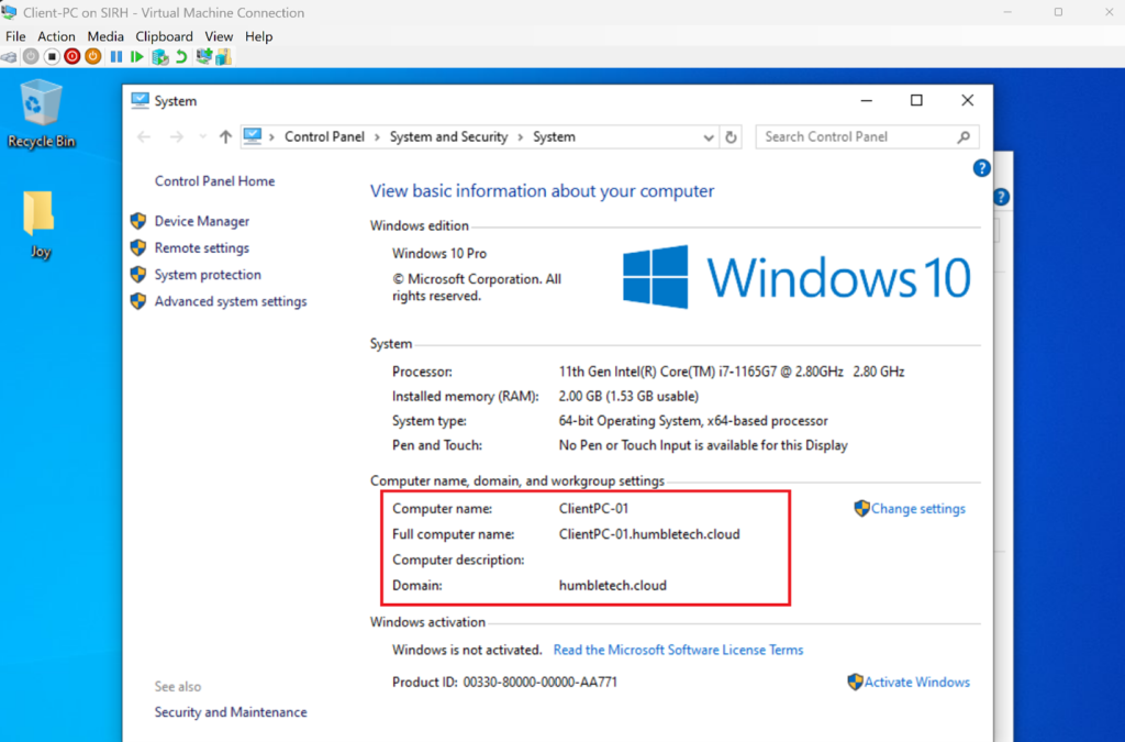 A domain environment is incomplete without client machines. Joining a client computer allows you to validate authentication, Group Policy processing, and centralized identity management, just as in real enterprise networks.